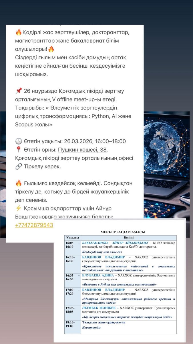 26 марта 2026 года Центр изучения общественного мнения проводит пятый офлайн meet-up на тему «Цифровая трансформация социальных исследований: Python, AI и путь в Scopus».